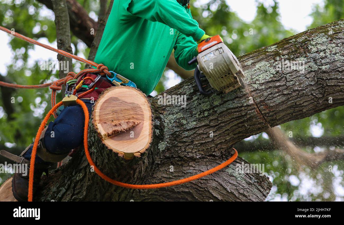 Professional High in Tree Removing Limbs Stock Photo Image of debris