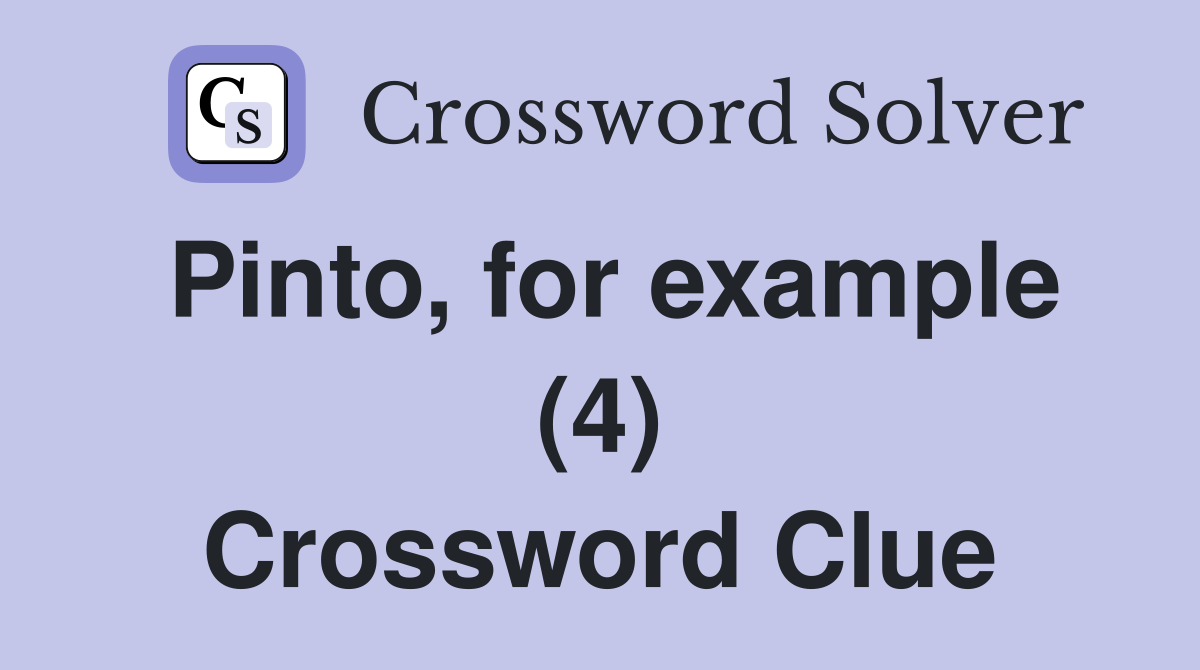 Pinto for example (4) Crossword Clue Answers Crossword Solver