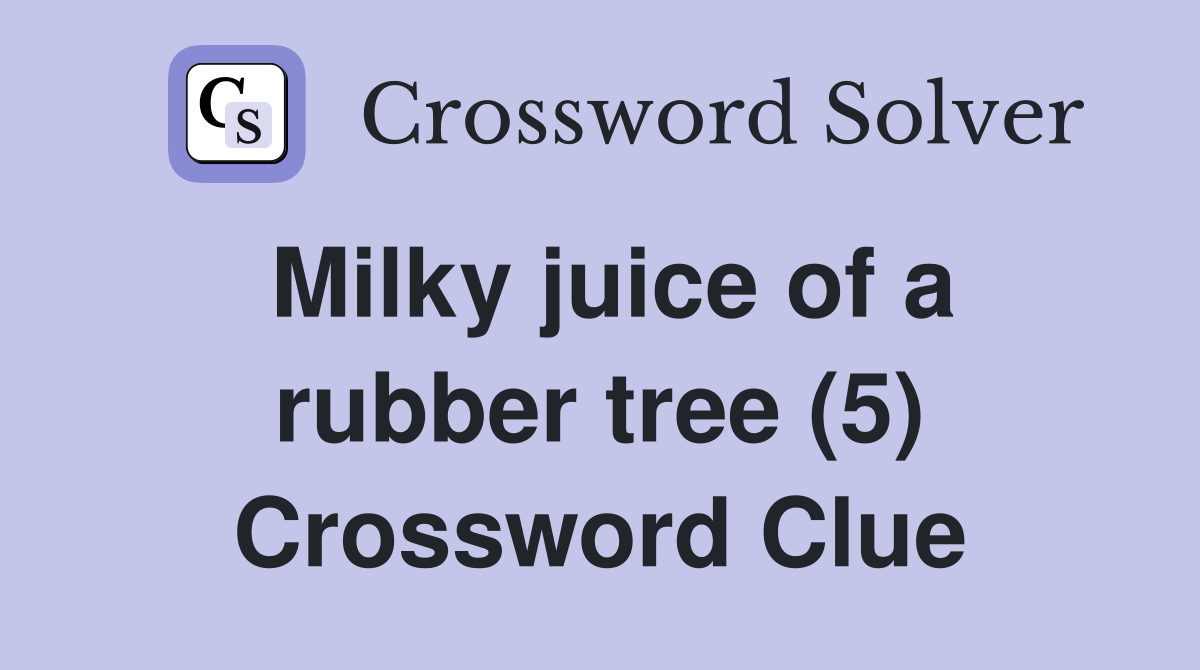 Milky juice of a rubber tree (5) Crossword Clue Answers Crossword