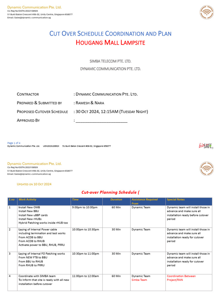 Cut Over Plan for Hougang Mall Lampsite PDF