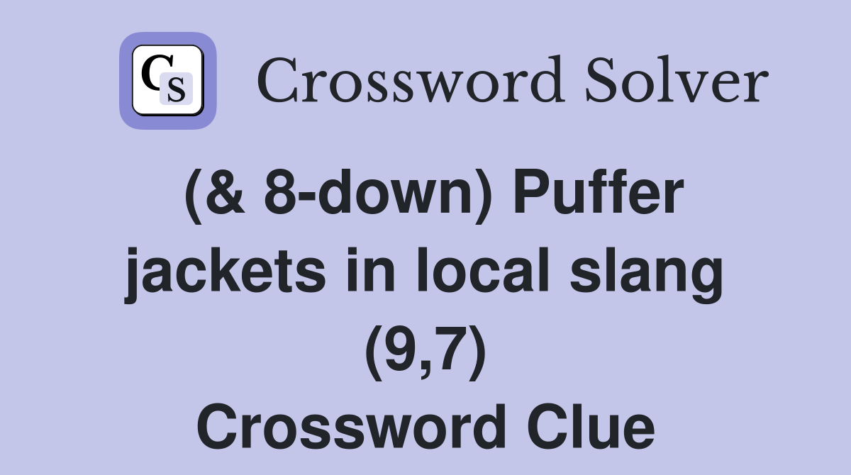 ( 8 down) Puffer jackets in local slang (9 7) Crossword Clue Answers