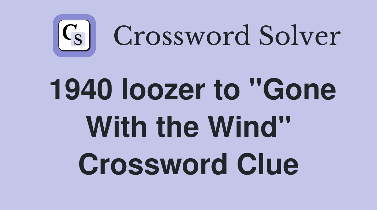 1940 loozer to #39 #39 Gone With the Wind #39 #39 Crossword Clue Answers