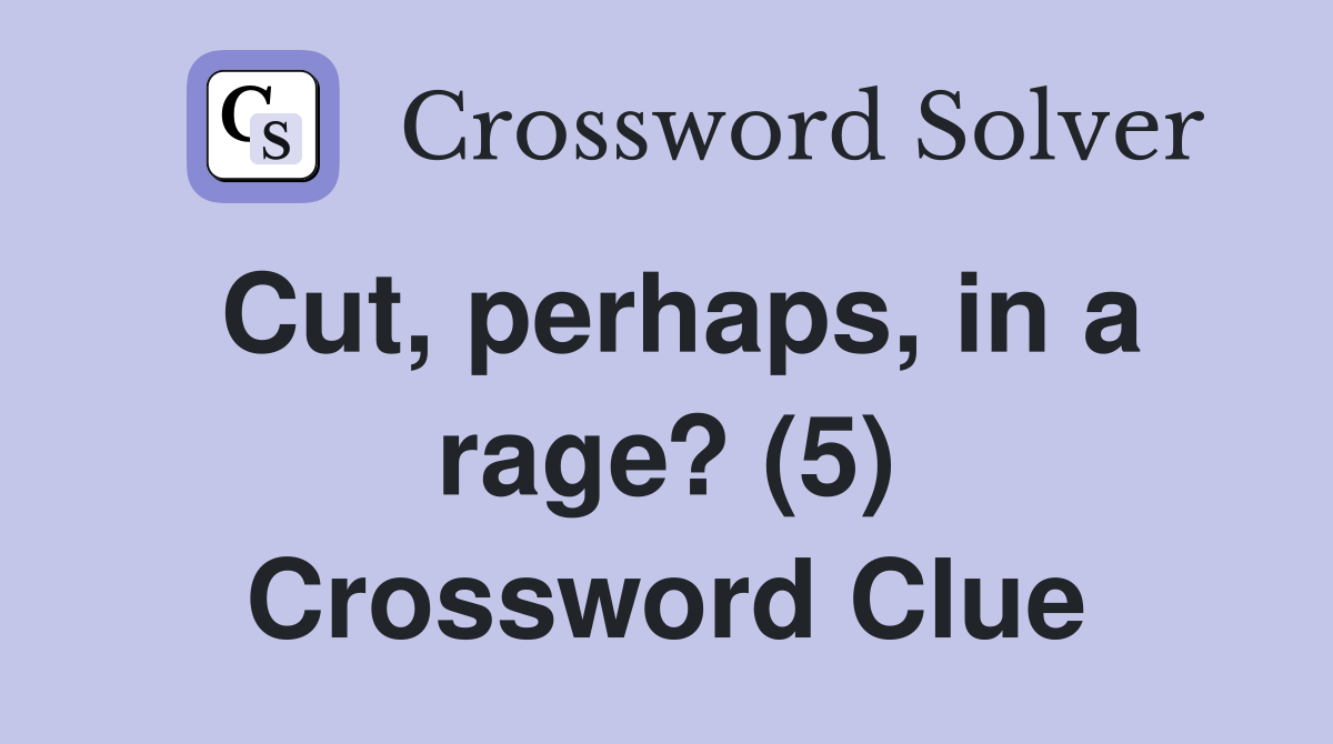 Cut perhaps in a rage? (5) Crossword Clue Answers Crossword Solver