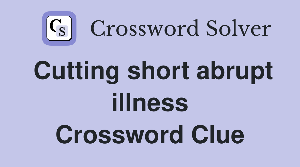 Cutting short abrupt illness Crossword Clue Answers Crossword Solver