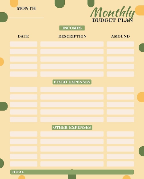 Premium Vector Cute green monthly budget plan template Worksheets