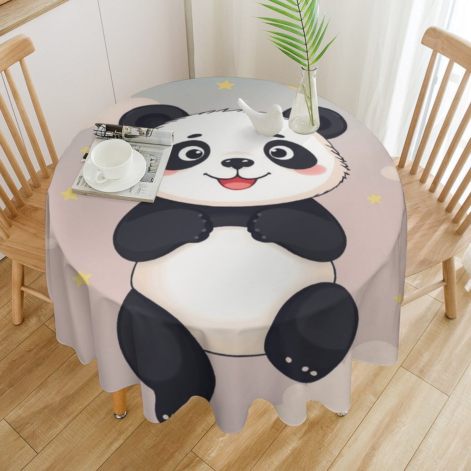 Cute Panda Dreams Polyester Round Waterproof Cover Table Decor