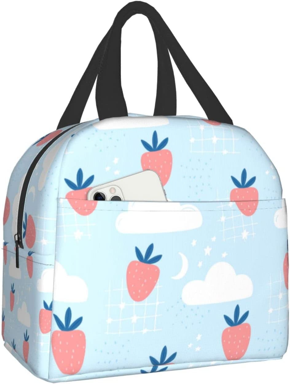 Cute Strawberries and Flowers Lunch Bag Reusable Lunch Box Work Bento