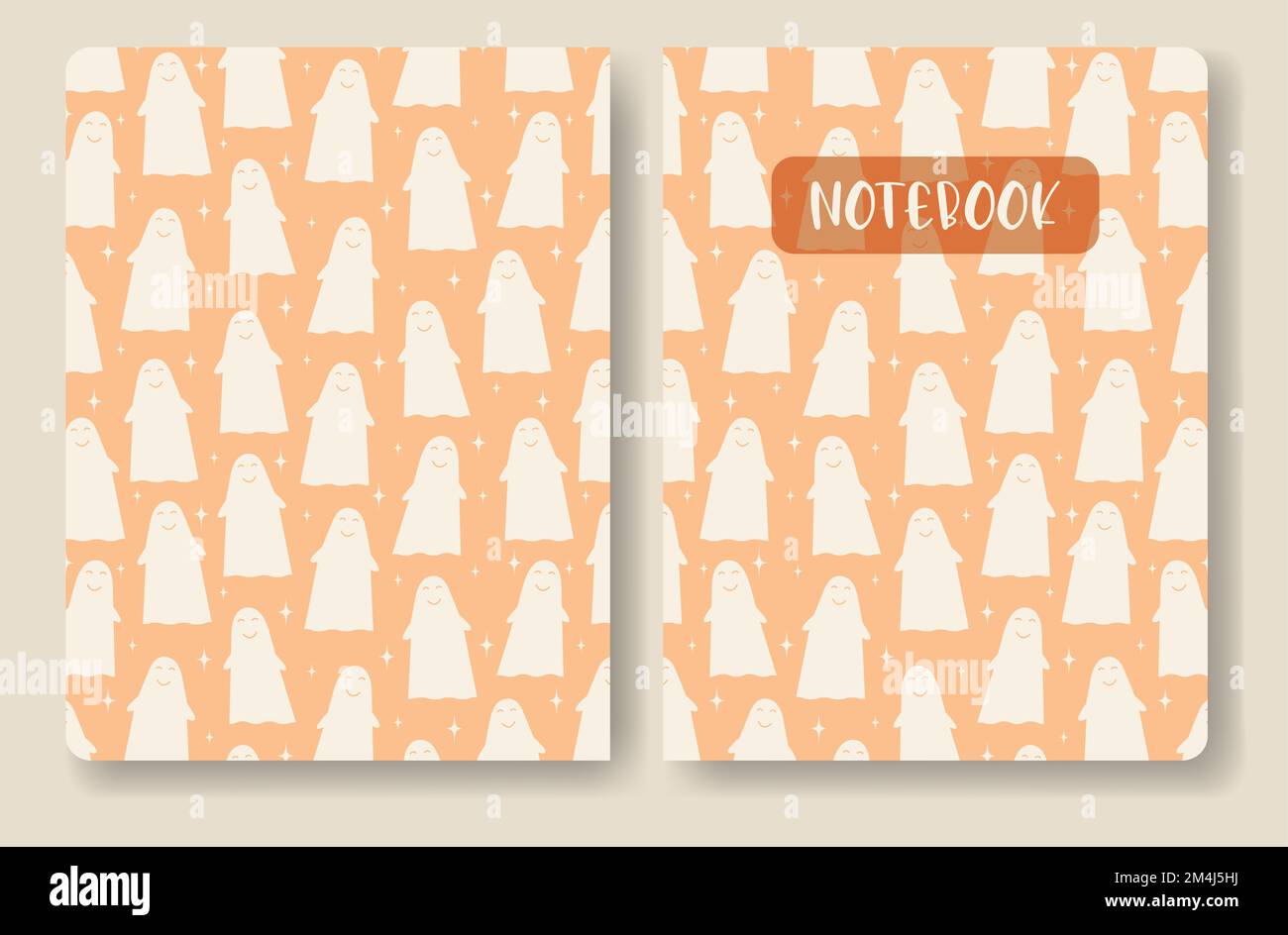 Vector Halloween cute ghost template for notebook cover Stock Vector
