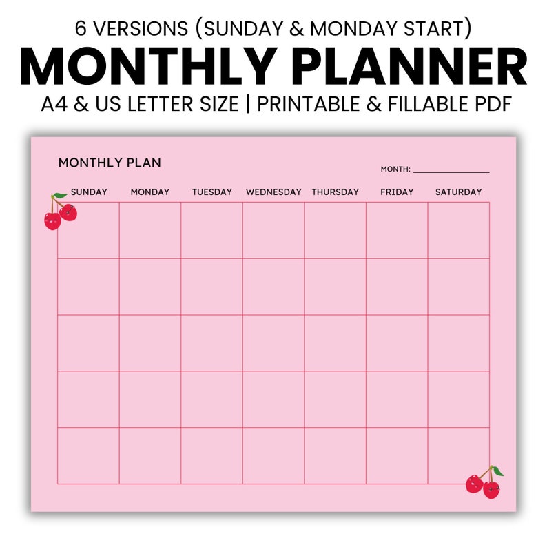 Cute Monthly Planner Printable Stationery Instant Download A4