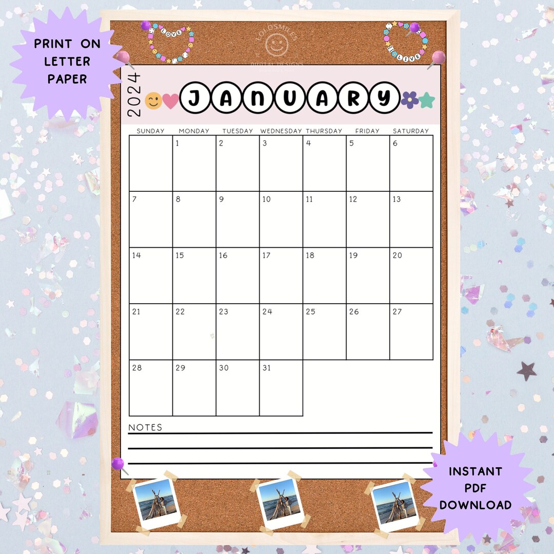 Cute Aesthetic Printable 2024 Monthly Calendar