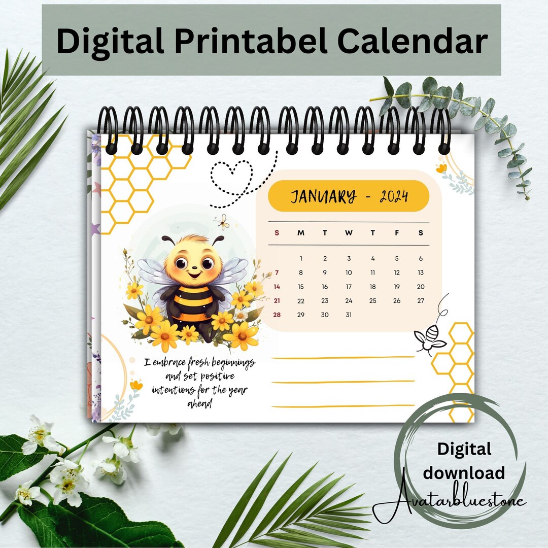 Cute Month Calendar 2024 Monthly Planner Table Calendar Etsy
