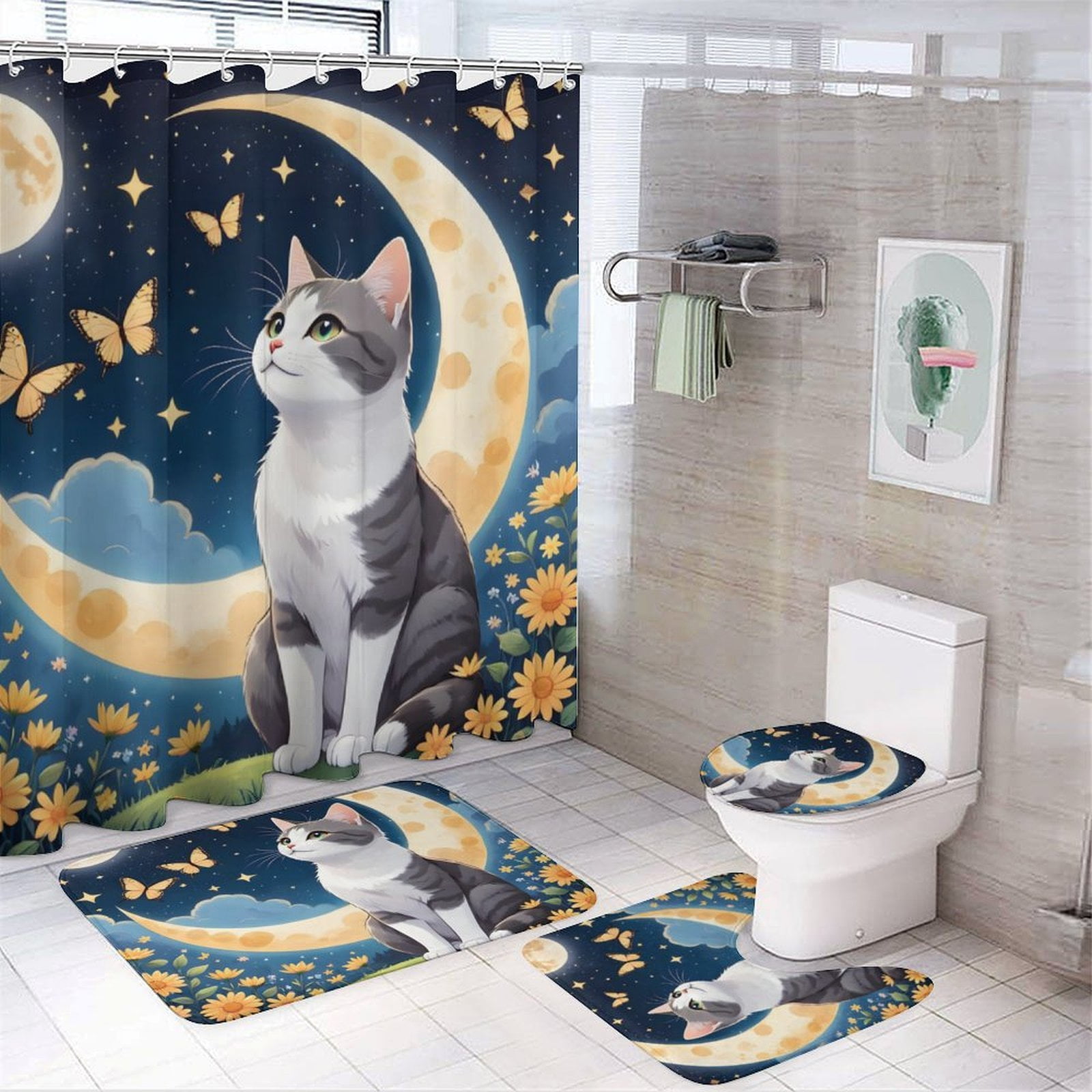 Cute Cat Shower Curtain 4 Piece Bathroom Decor Set Includes 72 quot x 72