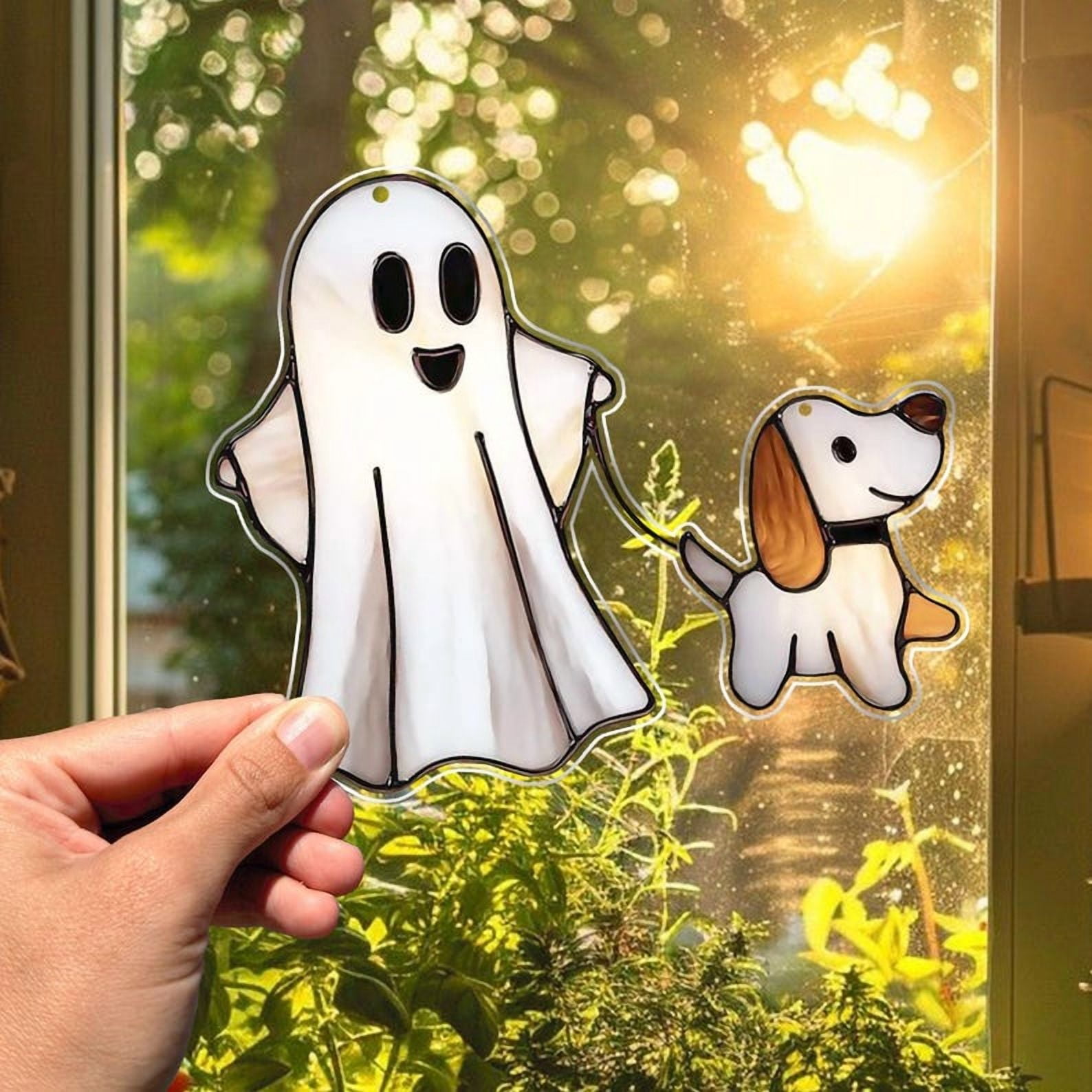 Cute Ghost and Dog Acrylic Suncatcher Halloween Ghost Window Hangings