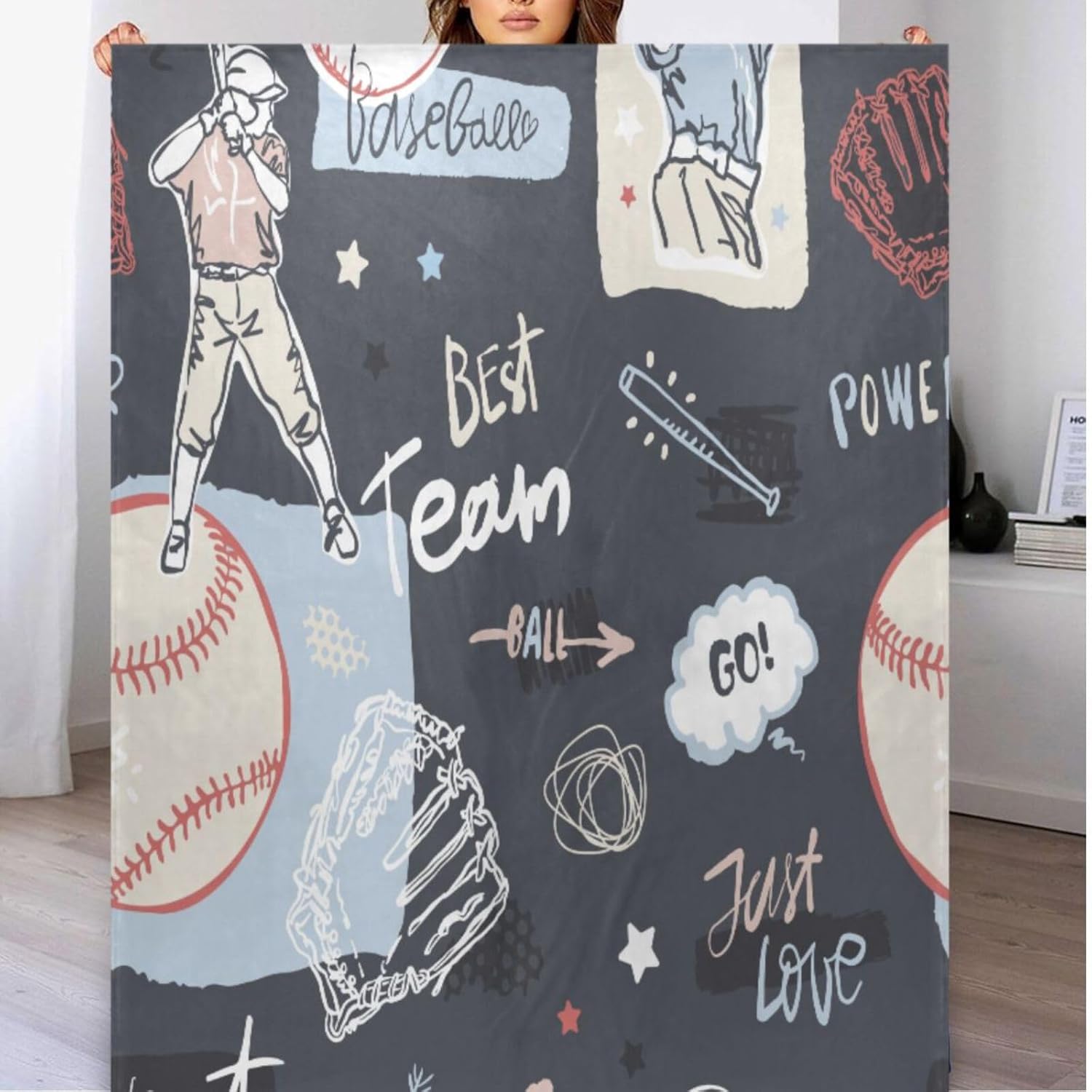 Cute Baseball Players Team Throw Blanket Sports Soft Cozy Flannel