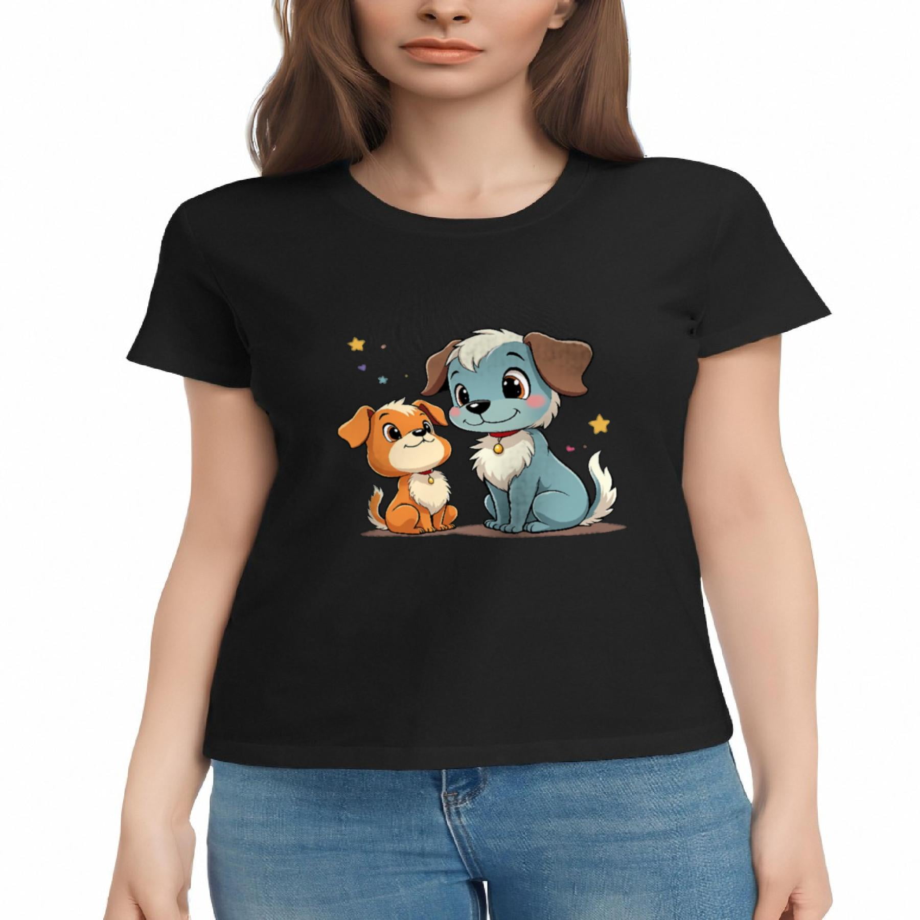 Cute Cartoon Dogs Graphic Tee Women #39 s Cotton Short Sleeve T Shirt