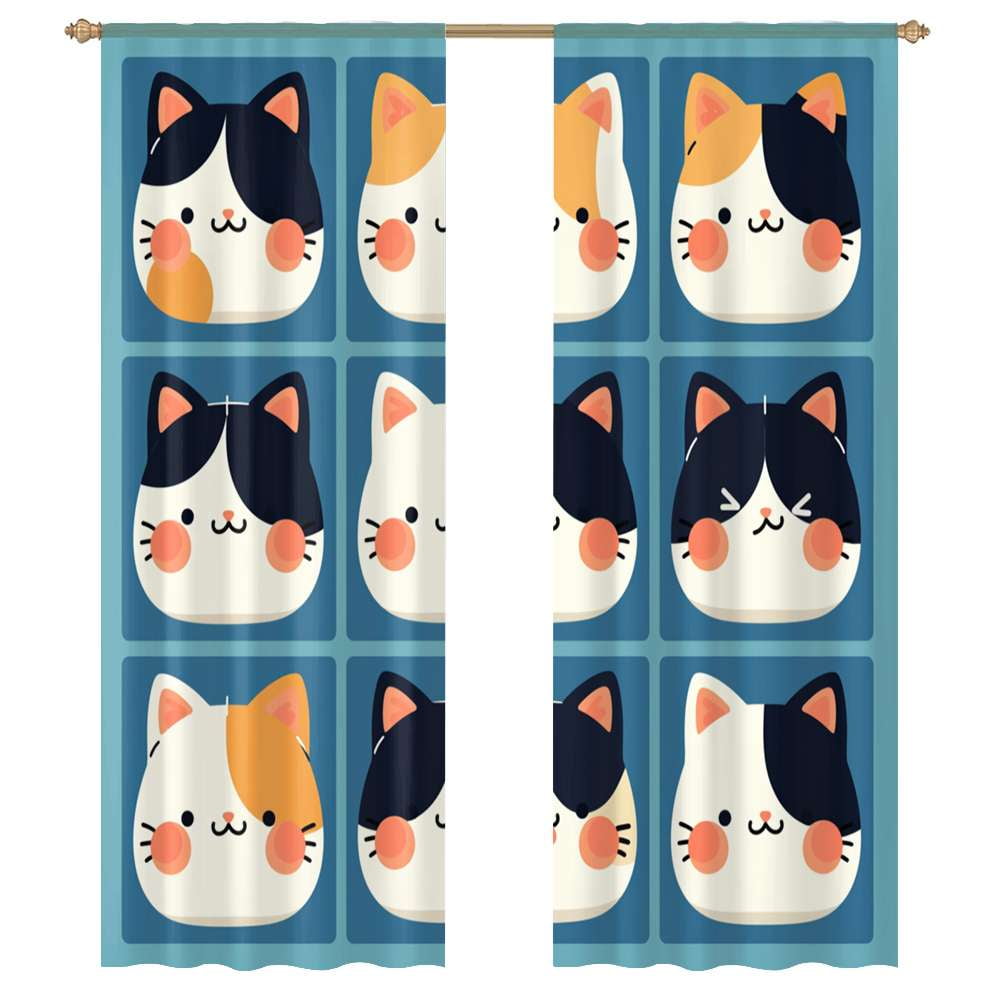 Cute Cat Tulle Curtains For Living Room Chiffon Sheer Voile Kitchen