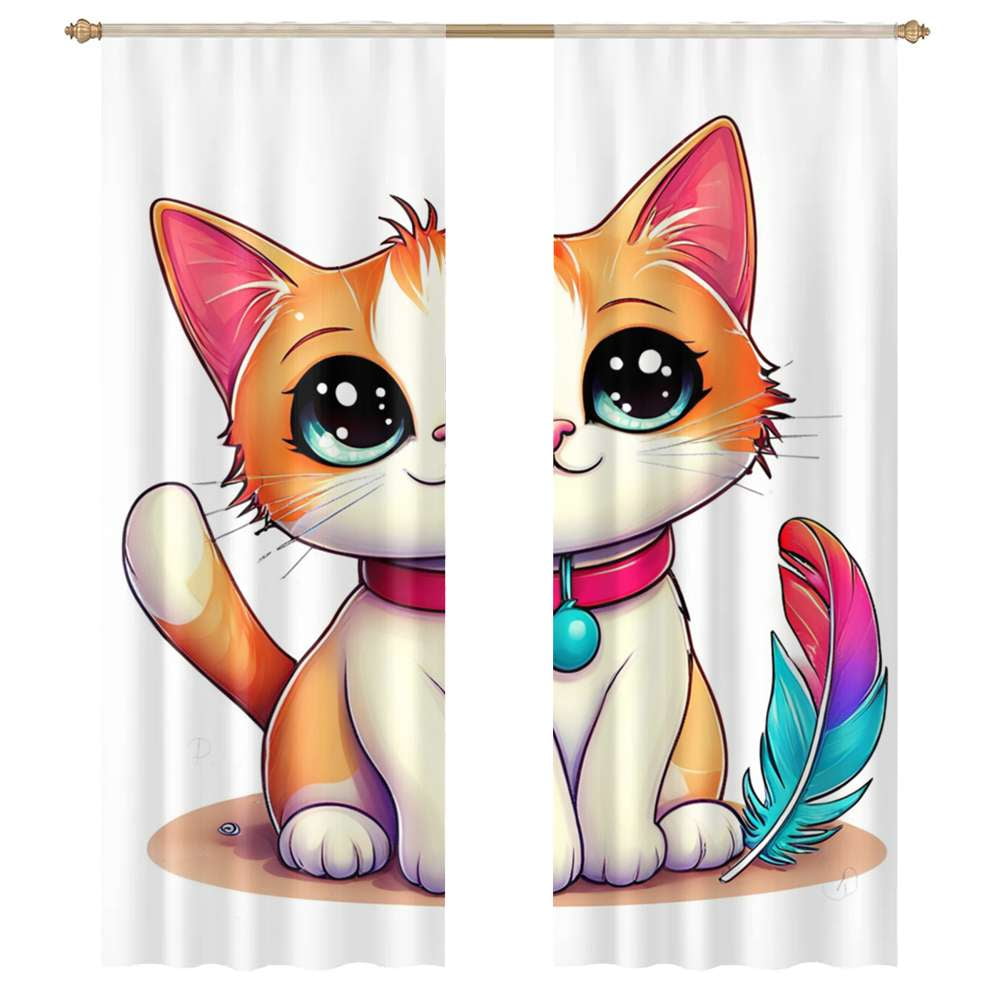 Cute Cat With Plumage Tulle Curtains For Living Room Chiffon Sheer