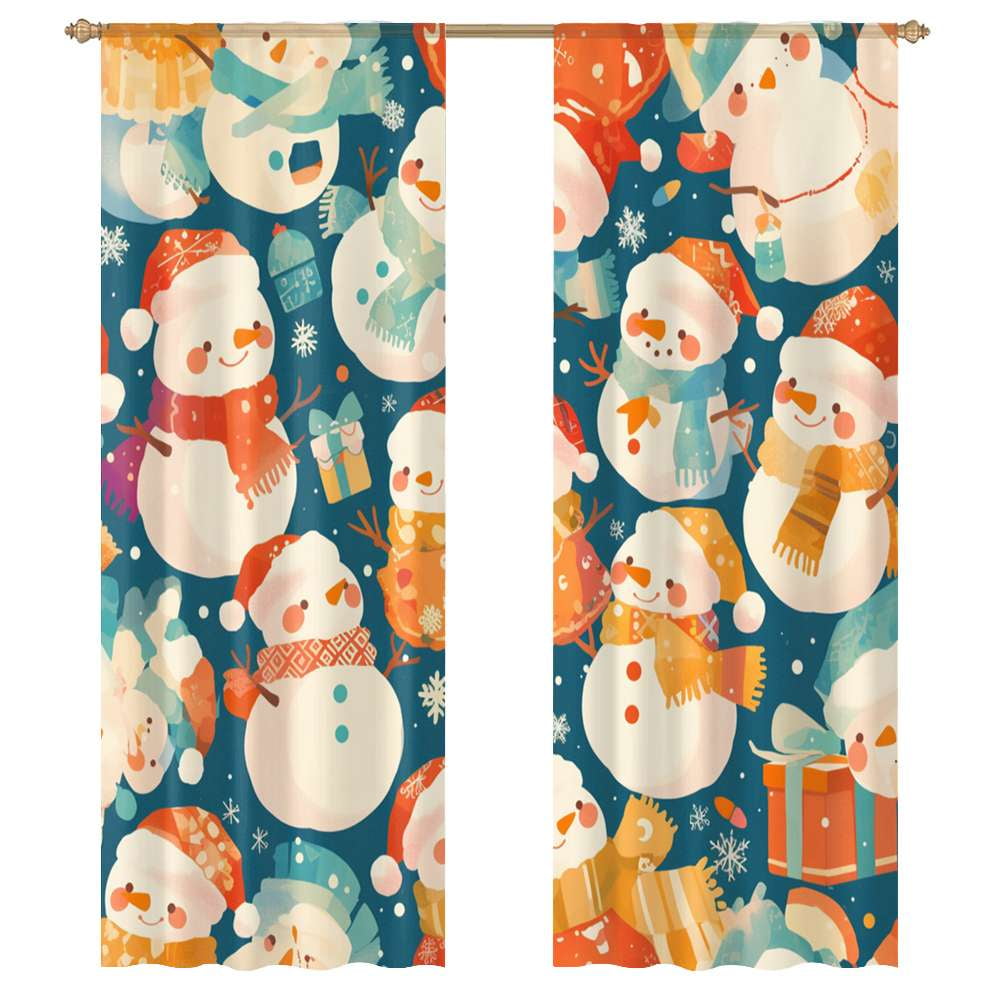 Cute Christmas Snowman Sheer Window Curtains for Living Room Kitchen