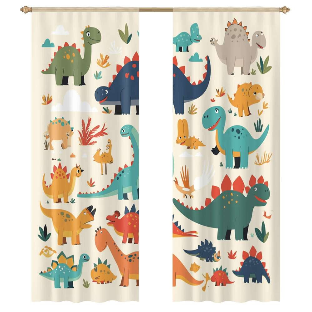 Cute Dinosaur Tulle Curtains For Living Room Chiffon Sheer Voile