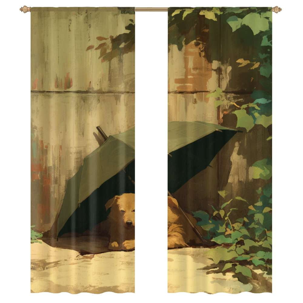 Cute Dog Hiding Under Umbrella Tulle Curtains For Living Room Chiffon