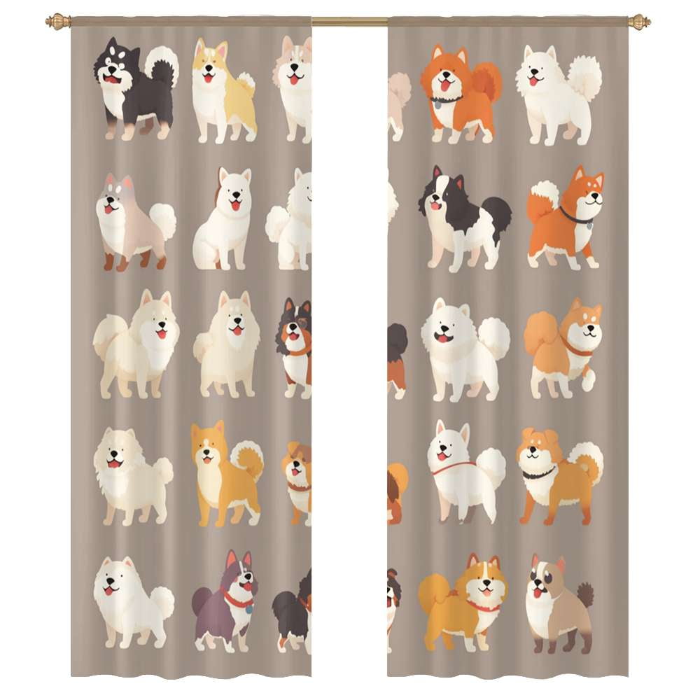 Cute Dog Tulle Curtains For Living Room Chiffon Sheer Voile Kitchen