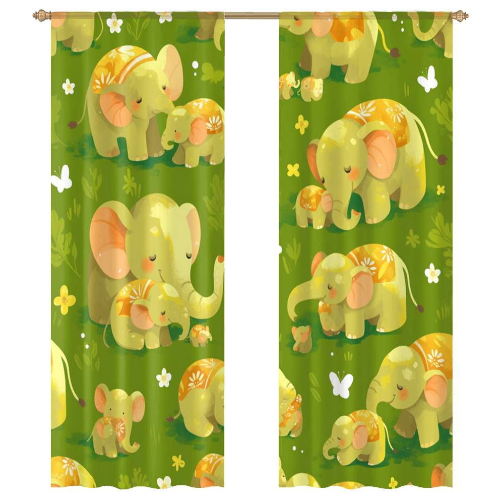Cute Elephant Tulle Curtains For Living Room Chiffon Sheer Voile