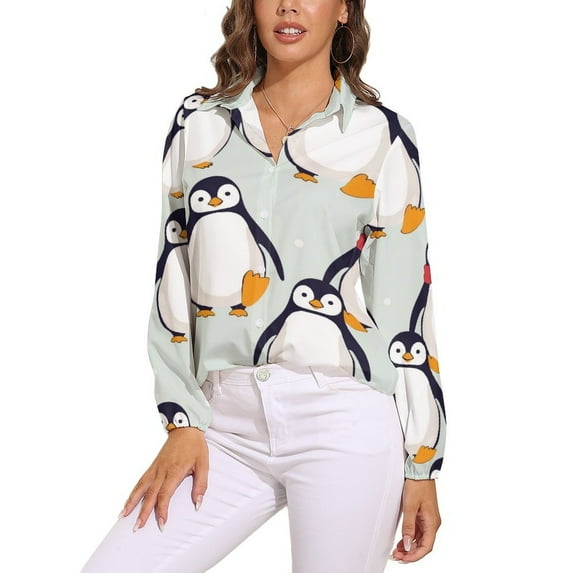 Cute Penguin Blouse Female Long Sleeve Casual Shirts Oversized Clothing