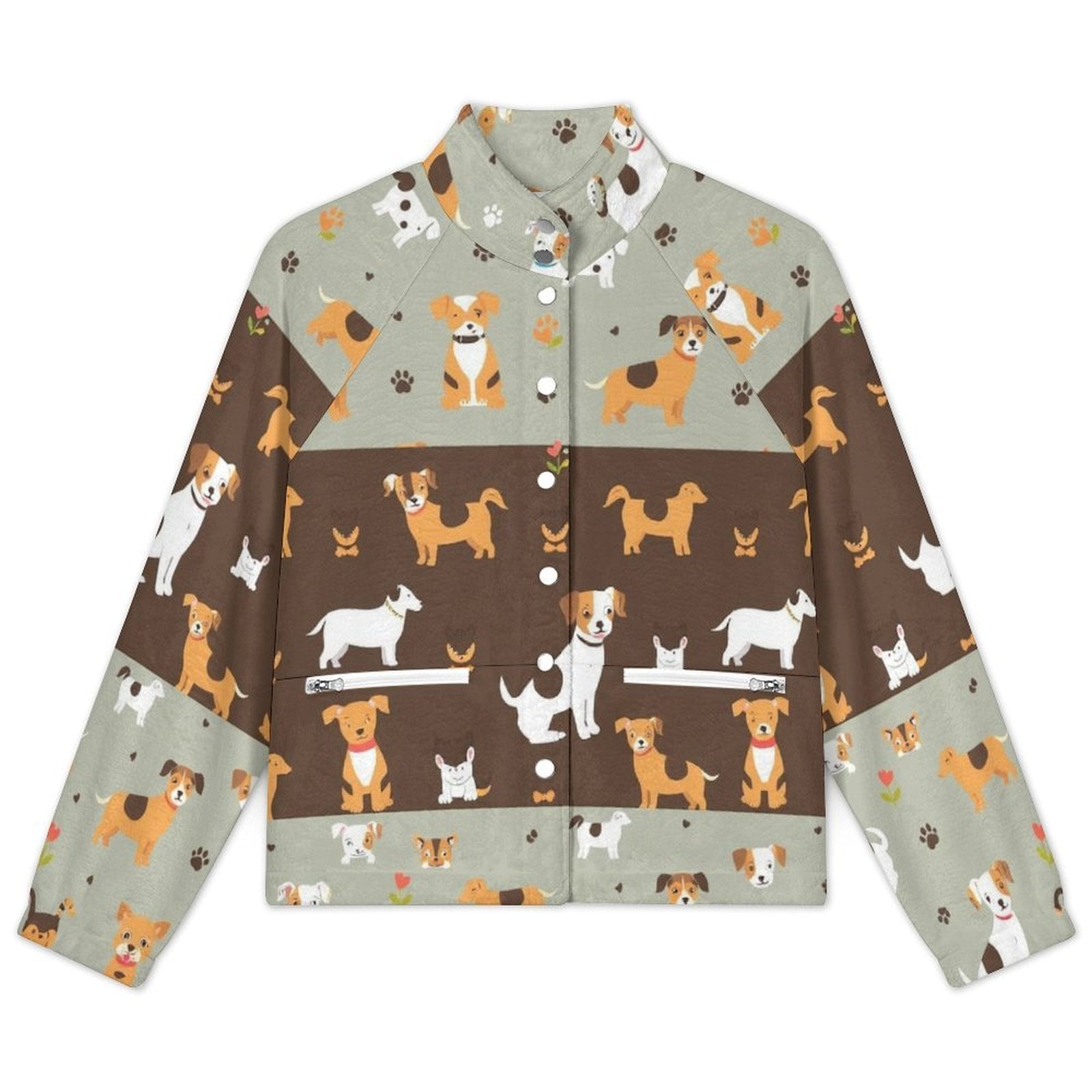 Cute Puppy Patterns Fall Winter Women Jacket Stand Collar Thick Plush