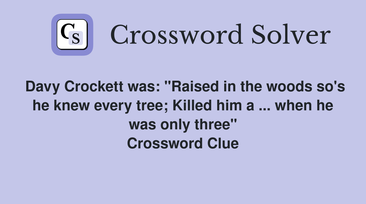 Davy Crockett was: quot Raised in the woods so #39 s he knew every tree Killed