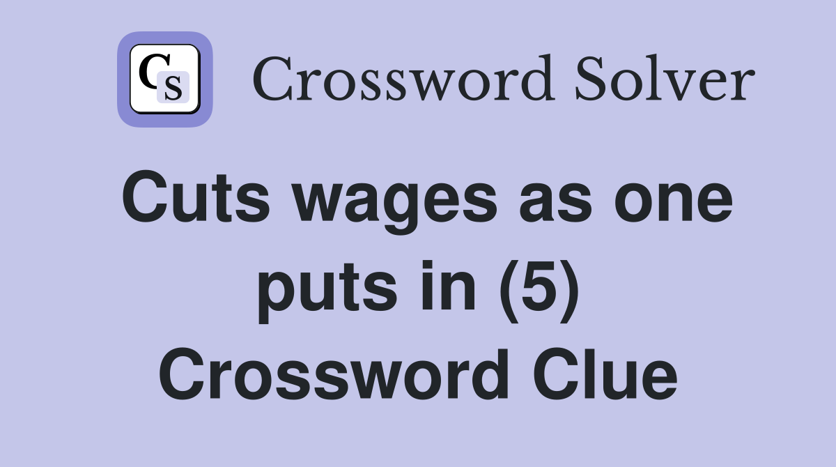 Cuts wages as one puts in (5) Crossword Clue Answers Crossword Solver