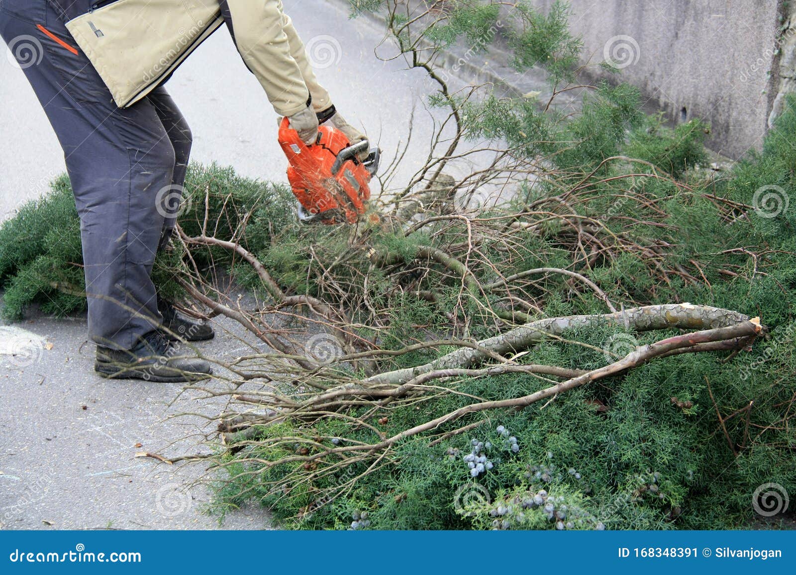 Cutting Off Branches of Cypress Tree Stock Photo Image of cutting