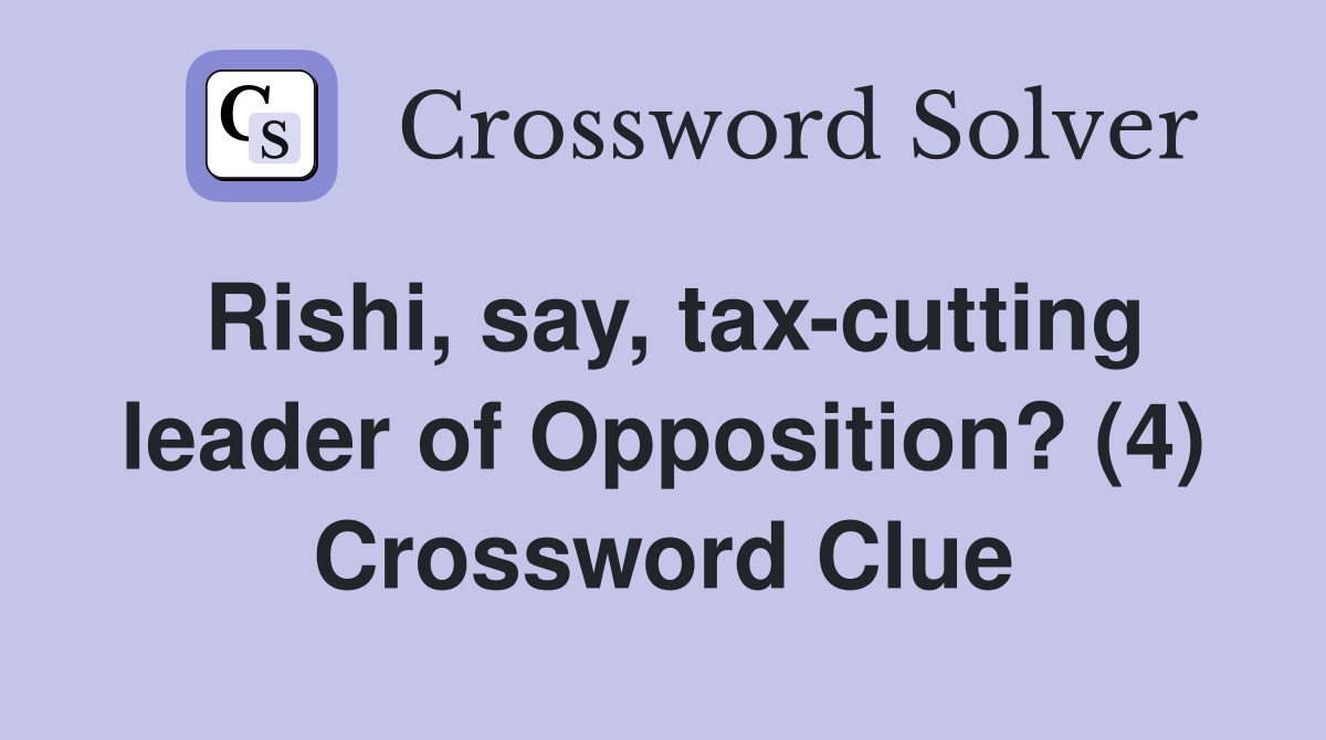 Rishi say tax cutting leader of Opposition? (4) Crossword Clue