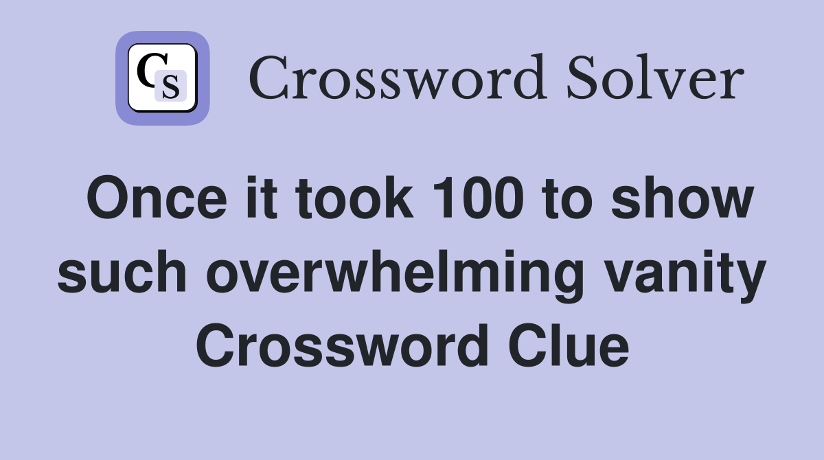 Once it took 100 to show such overwhelming vanity Crossword Clue