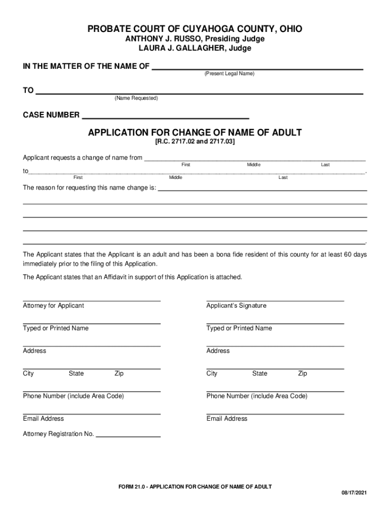 Probate Court Of Cuyahoga County Ohio Application For Change Probate