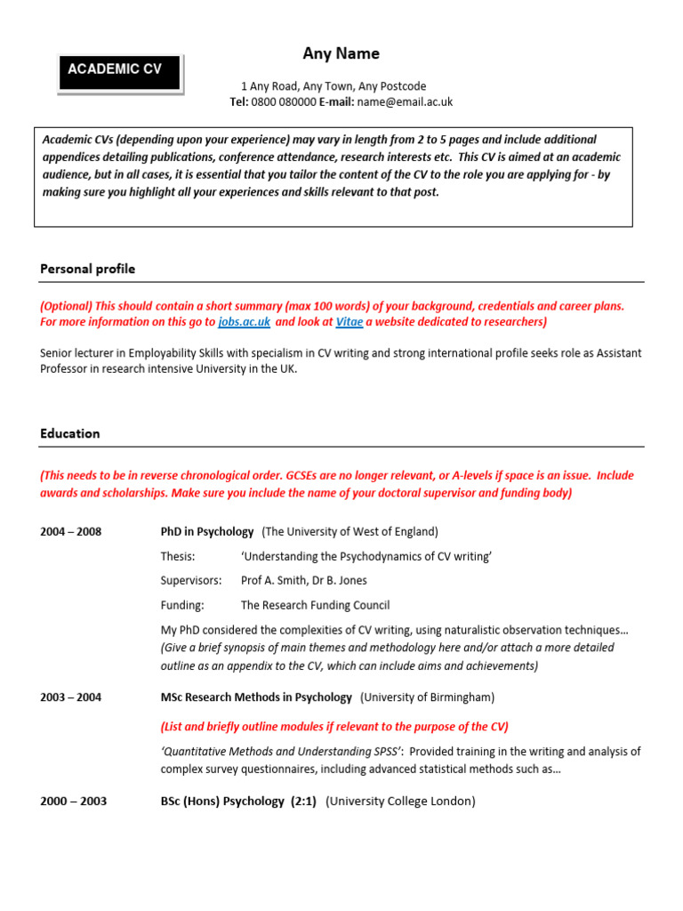 Academic CV Template PDF Doctor Of Philosophy Psychology