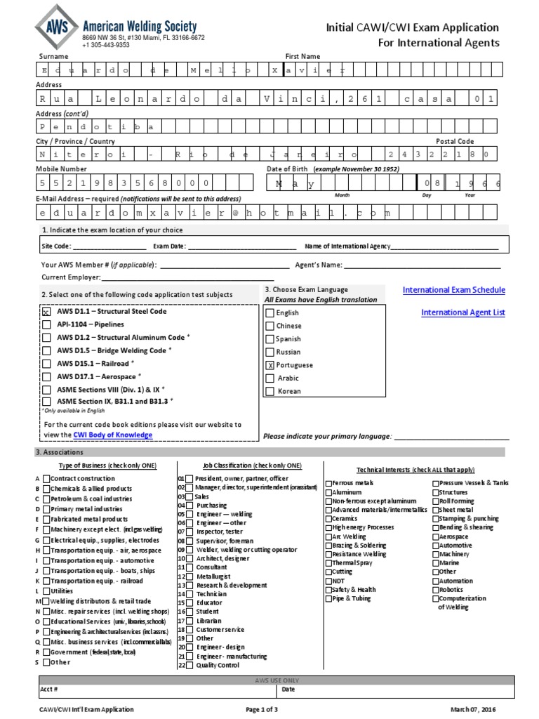 CWI Application Form Welding Professional Certification