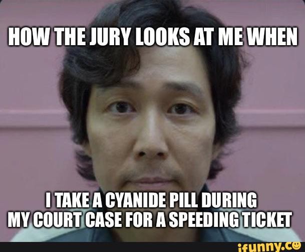 HOW THE JURY LOOKS AT ME WHEN TAKE A CYANIDE PILL DURING MY COURT CASE