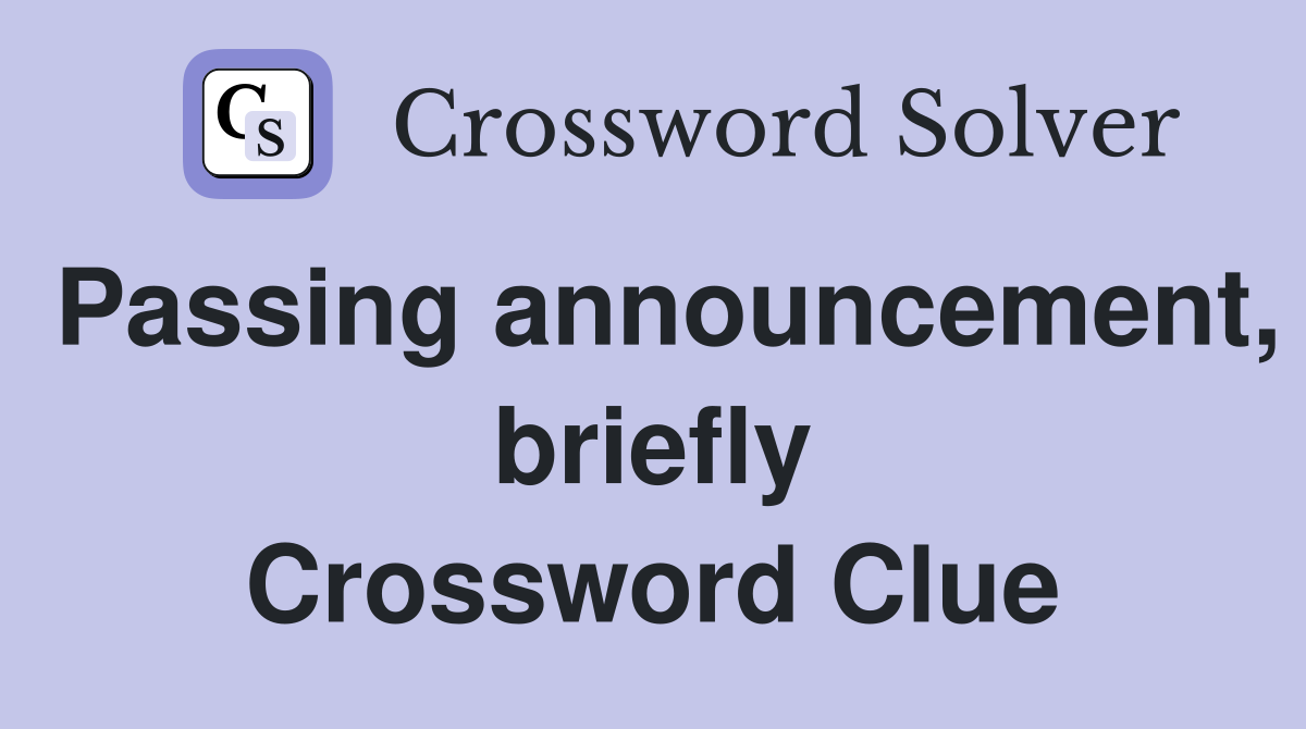 Passing announcement briefly Crossword Clue Answers Crossword Solver