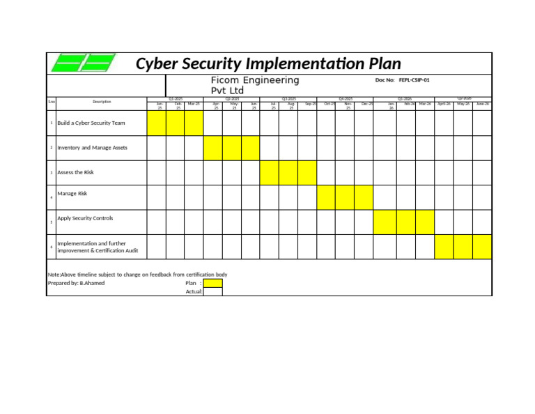 Cybersecurity Implementation Plan Template (Word PDF) Free Trial