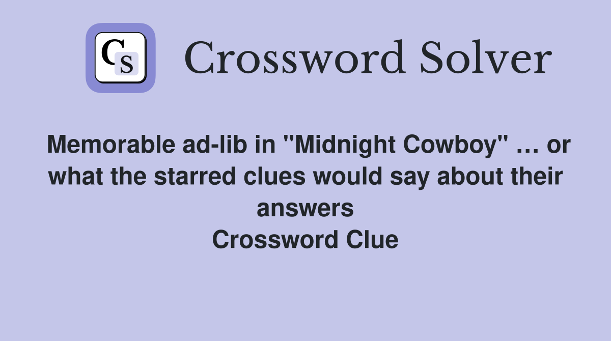 Memorable ad lib in quot Midnight Cowboy quot or what the starred clues would
