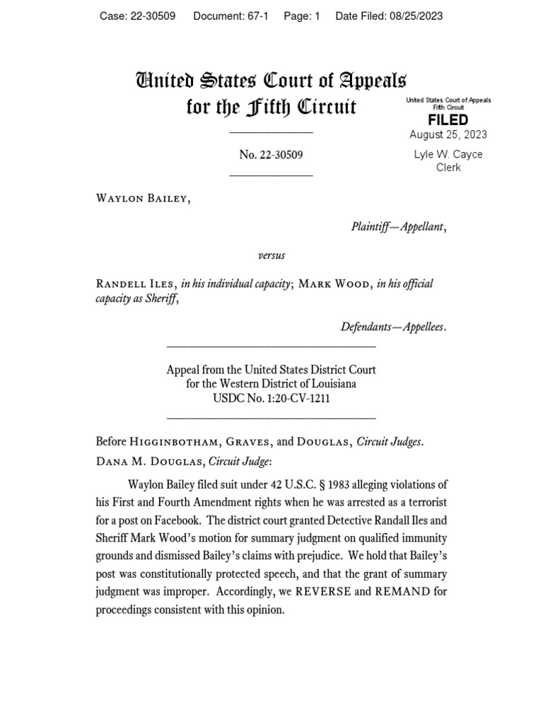 U S Fifth Circuit Court of Appeals Ruling Re: Waylon Bailey PDF