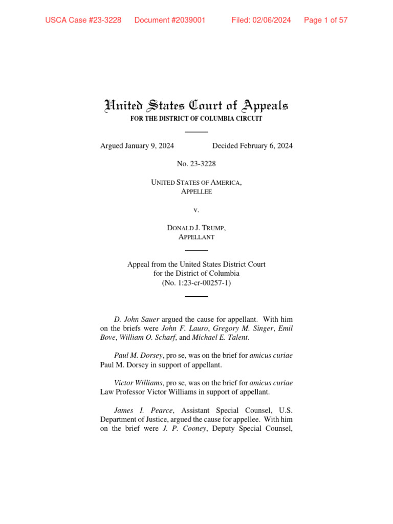 D C Circuit Court of Appeals Ruling On Trump Immunity PDF