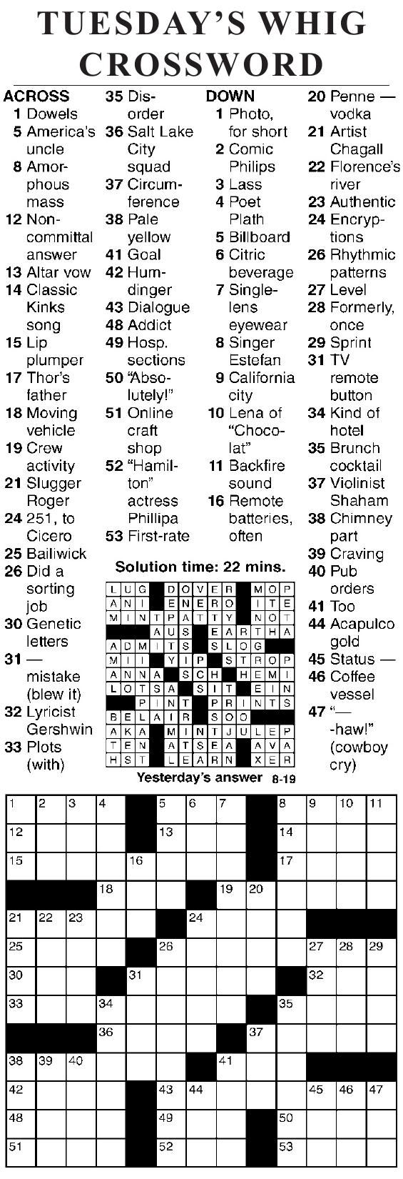 0819 crossword Crosswords cecildaily com