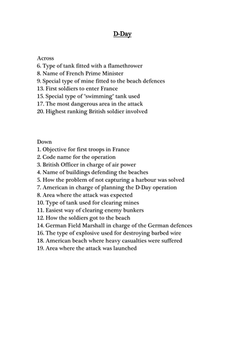 D Day information sheet and crossword Teaching Resources