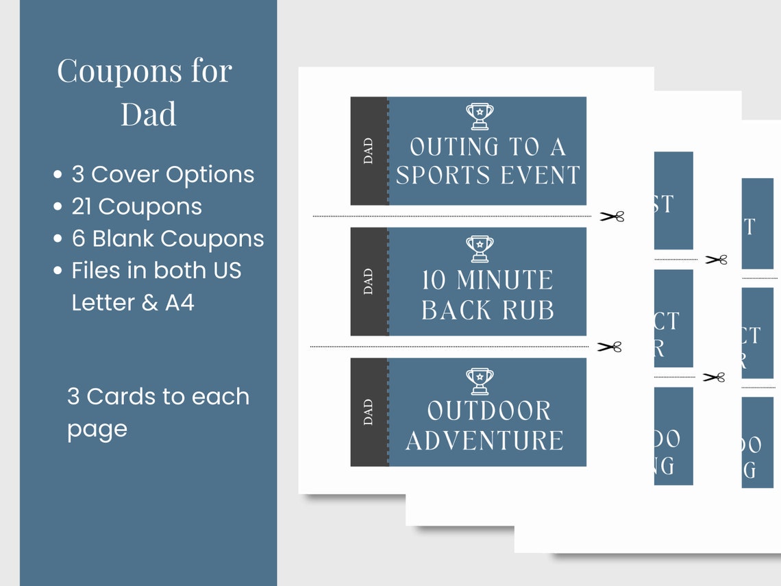 Dad Coupon Book Printable Coupons for Dad Birthday Coupons Etsy