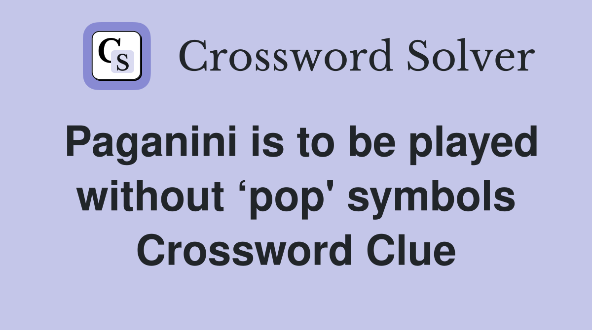 Paganini is to be played without pop #39 symbols Crossword Clue Answers