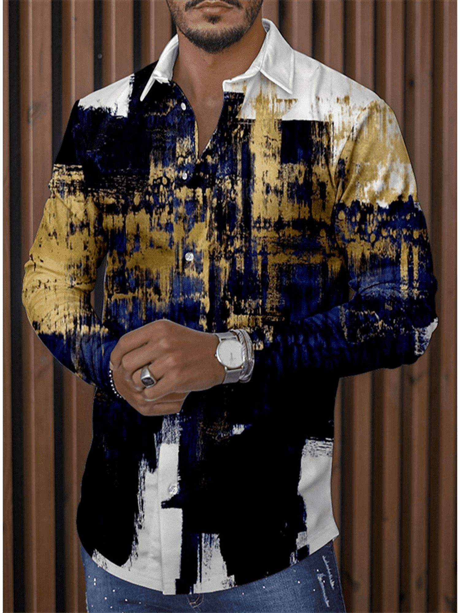 2025 Color Block Colorful Men #39 s Abstract Daily Wear Outing Spring Lapel