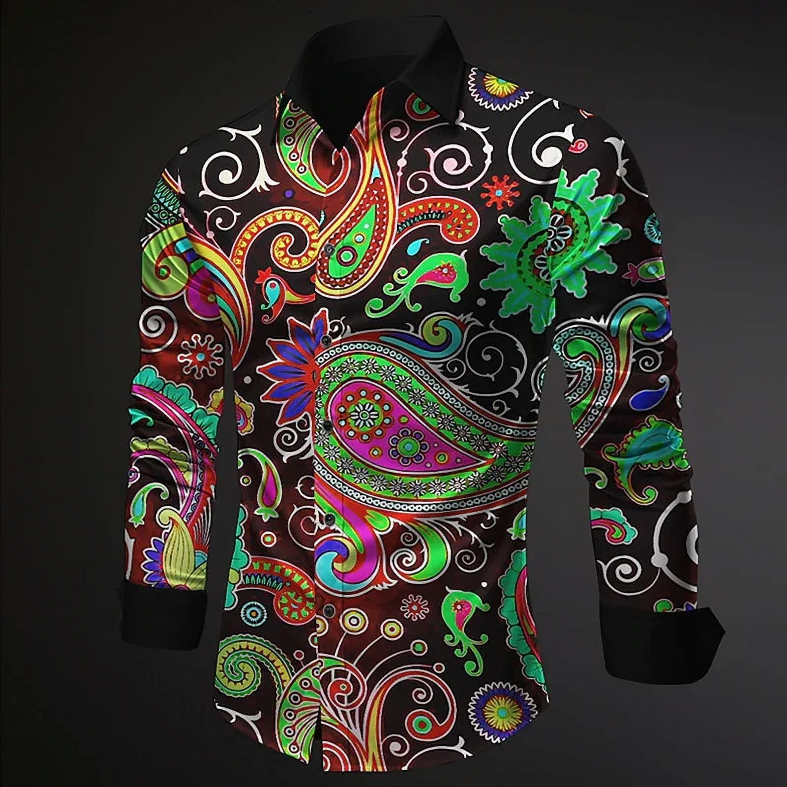 2025 Spring Summer Fashion Men #39 s Long Sleeve Lapel Button Map Casual