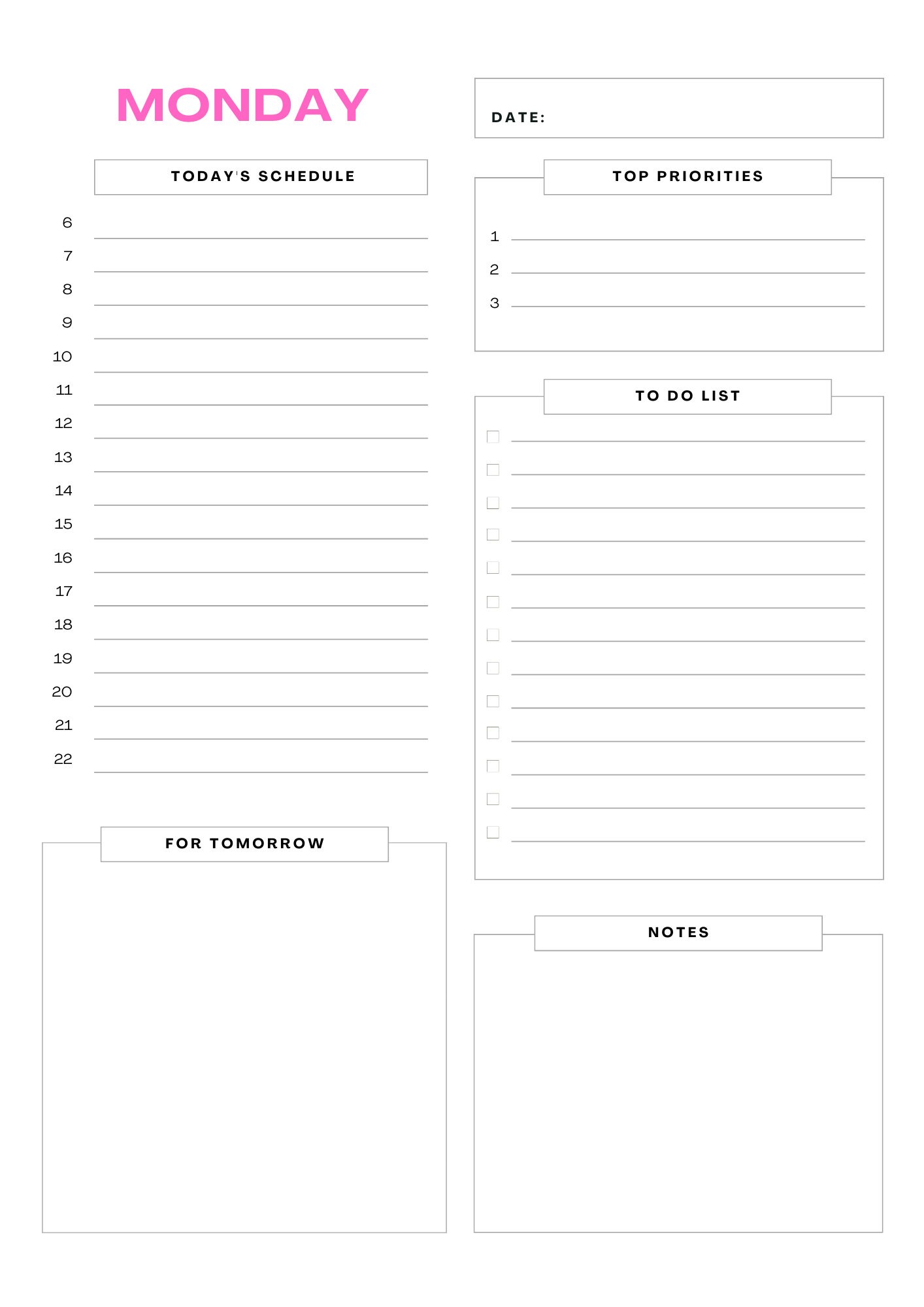 DP102 Daily Planner Printable Grid Daily Organizer Planners and