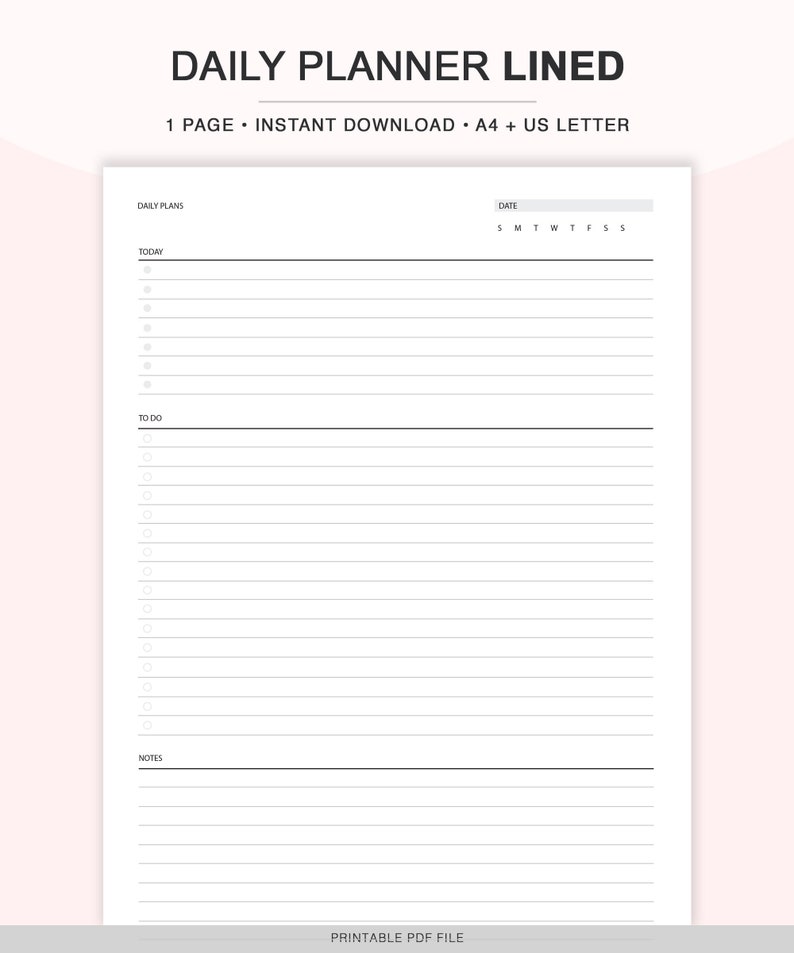 Daily Planner Printable to Do List Printable Notes Daily Schedule